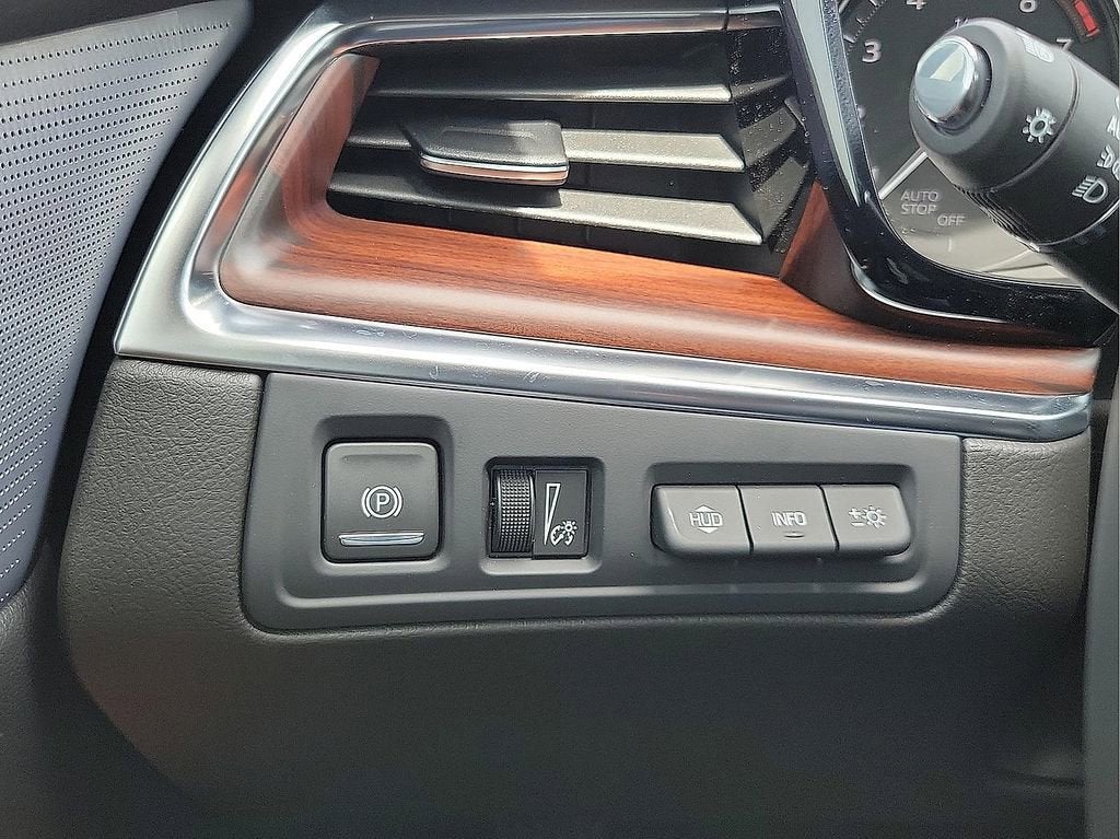 - Opens or closes when the system senses the key fob and the driver extends their foot under the left-hand side of the rear bumper over an image of the Cadillac Crest projected under the vehicle