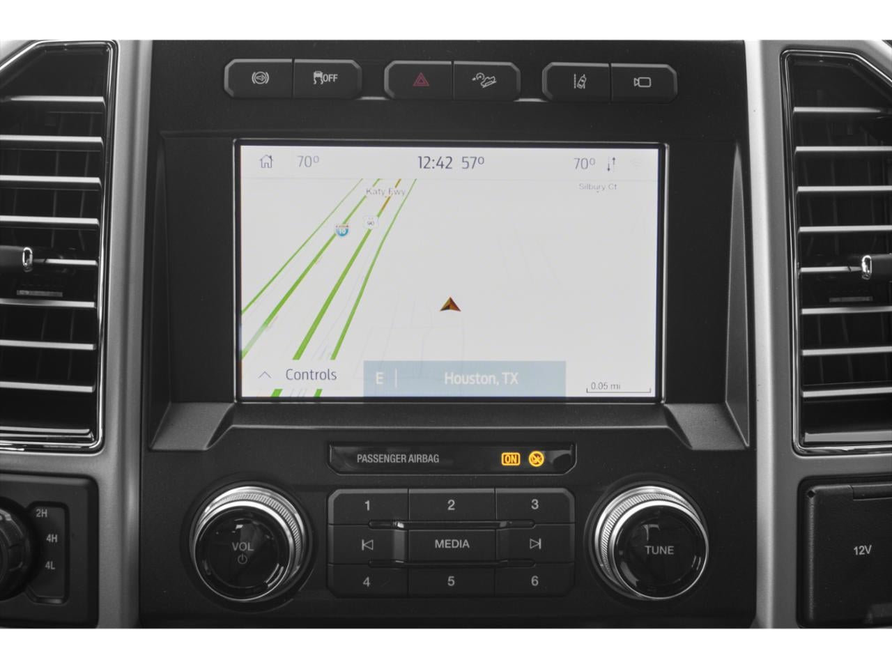 FX4 Off-Road Package (Hill Descent Control, Off-Road Specifically Tuned Shock Absorbers, and Unique FX4 Off-Road Box Decal), GVWR: 10,000 lb Payload Package, High Capacity Trailer Tow Package, King Ranch Ultimate Package (Multi-Contour Seats, Power-Deployable Running Boards, Quad Beam LED Headlamps & LED Taillamps, Tailgate Step & Handle, and Twin Panel Power Moonroof), Order Code 700A, Pro Trailer Backup Assist - High Capacity (Ultimate Trailer Tow Camera System), 10 Speakers, 110V/400W Outlet, 3.73 Axle Ratio, 4-Wheel Disc Brakes, ABS brakes, Adaptive Cruise Control & Collision Warning, Adjustable pedals, Air Conditioning, Alloy wheels, Auto High-beam Headlights, Auto tilt-away steering wheel, Auto-dimming Rear-View mirror, Automatic temperature control, Brake assist, Compass, Delay-off headlights, Driver door bin, Driver vanity mirror, Dual front impact airbags, Dual front side impact airbags, Electronic Stability Control, Emergency communication system: SYNC 3 911 Assist, Engine Block Heater, Exterior Parking Camera Rear, Flow-Through Console, Front anti-roll bar, Front Bucket Seats, Front Center Armrest, Front dual zone A/C, Front fog lights, Front reading lights, Fully automatic headlights, Garage door transmitter, Heated door mirrors, Heated front seats, Heated steering wheel, Illuminated entry, Illuminated running boards, Leather steering wheel, Low tire pressure warning, Memory seat, Navigation System, Outside temperature display, Overhead airbag, Overhead console, Panic alarm, Passenger door bin, Passenger vanity mirror, Pedal memory, Power door mirrors, Power driver seat, Power passenger seat, Power steering, Power windows, PowerScope Trailer Tow Mirrors w/Heat, Radio data system, Radio: B&O System by Bang & Olufsen, Rain sensing wipers, Rear Parking Sensors, Rear reading lights, Rear seat center armrest, Rear step bumper, Rear window defroster, Remote keyless entry, Security system, SiriusXM, SiriusXM Radio, Speed control, Split folding rear seat, Steering wheel memory, Steering wheel mounted A/C controls, Steering wheel mounted audio controls, SYNC 3 Communications & Entertainment System, Tachometer, Telescoping steering wheel, Tilt steering wheel, Traction control, Trip computer, Turn signal indicator mirrors, Unique King Ranch Leather 40/Console/40 Front Seats, Upfitter Switches (6), Variably intermittent wipers, Ventilated front seats, Wheels: 18" Bright Machined Cast Aluminum, and Wheels: 20" Bright Machined Cast Aluminum.